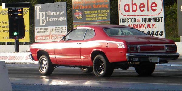 Beat on the car like it owed me cash, ran flawless for almost a dozen passes at Lebanon Valley Mopar day. I had not planned on taking the car but with the CSX is still giving me fits, wanted to see what the Duster would run with the mods (overdrive-cam-carb) done since 2010.